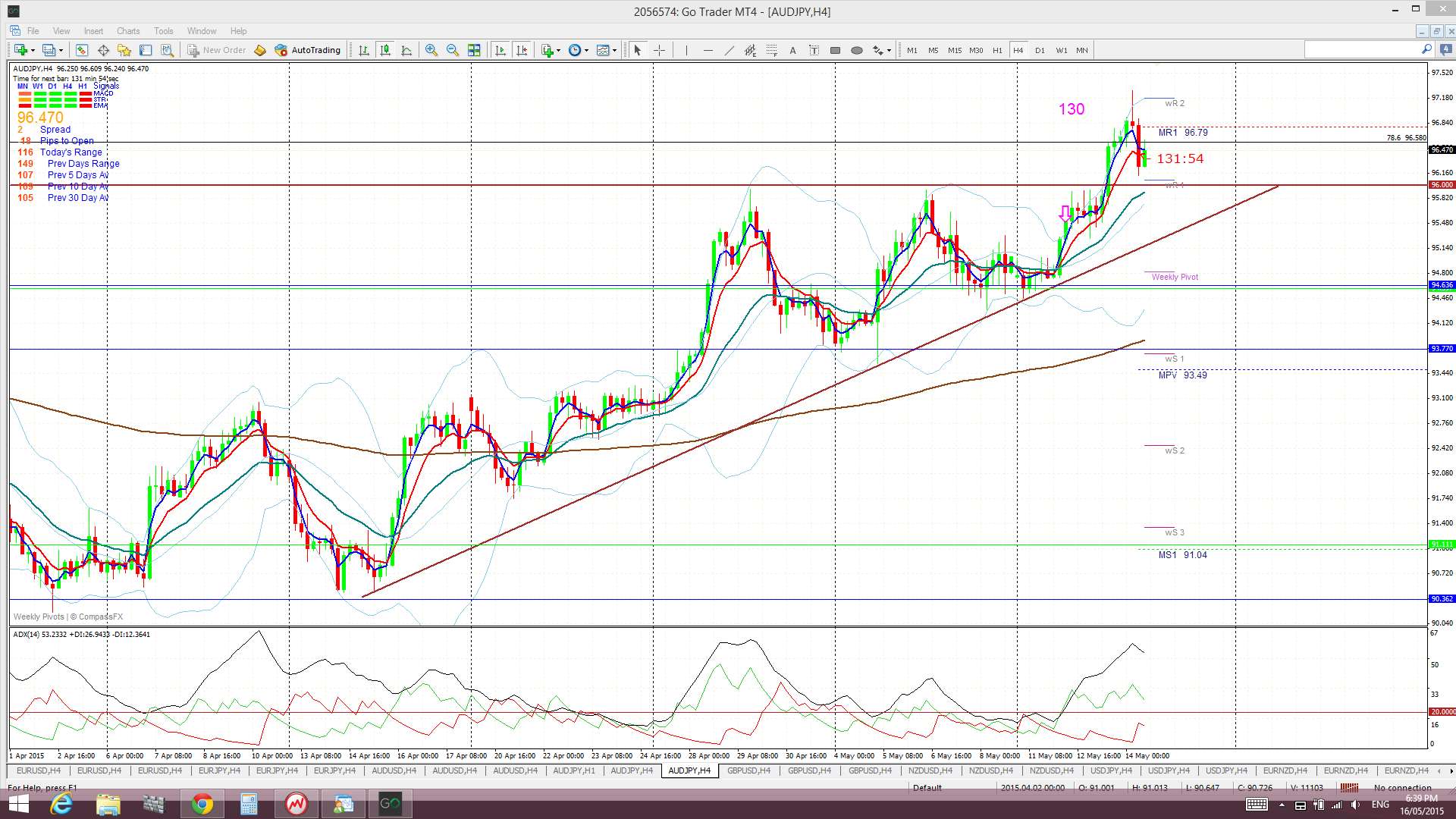 A/J 4hr: has made a weekly close above 96 which is bullish: